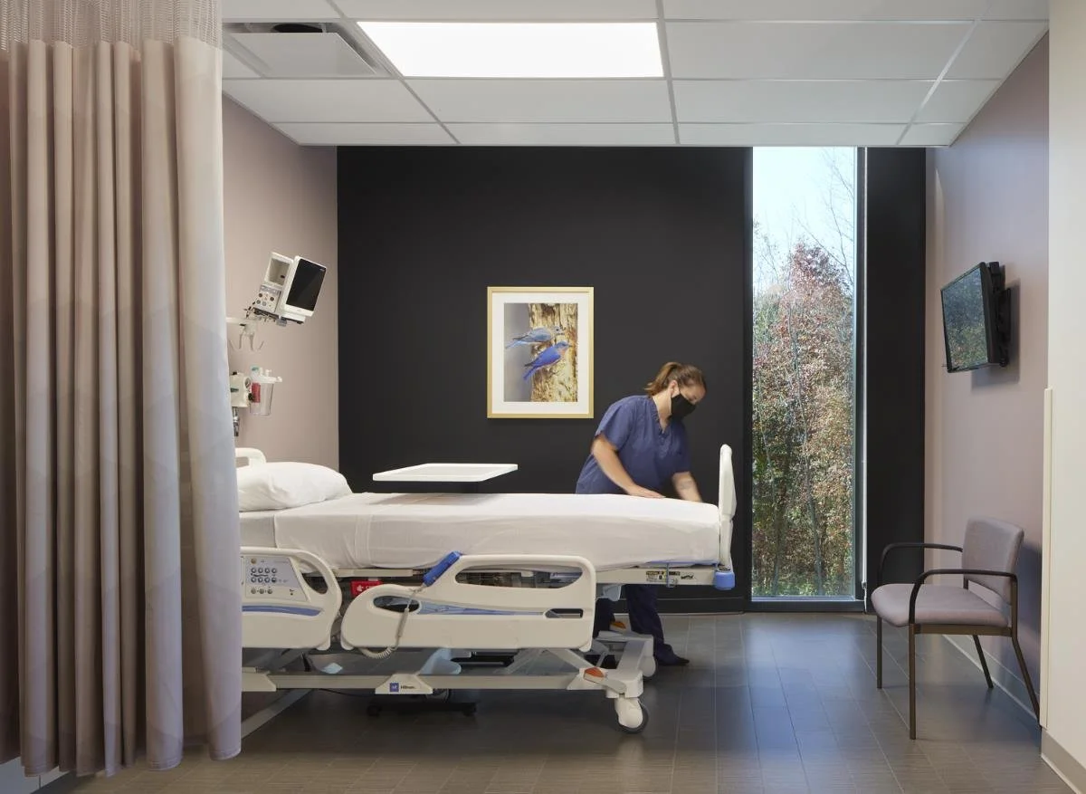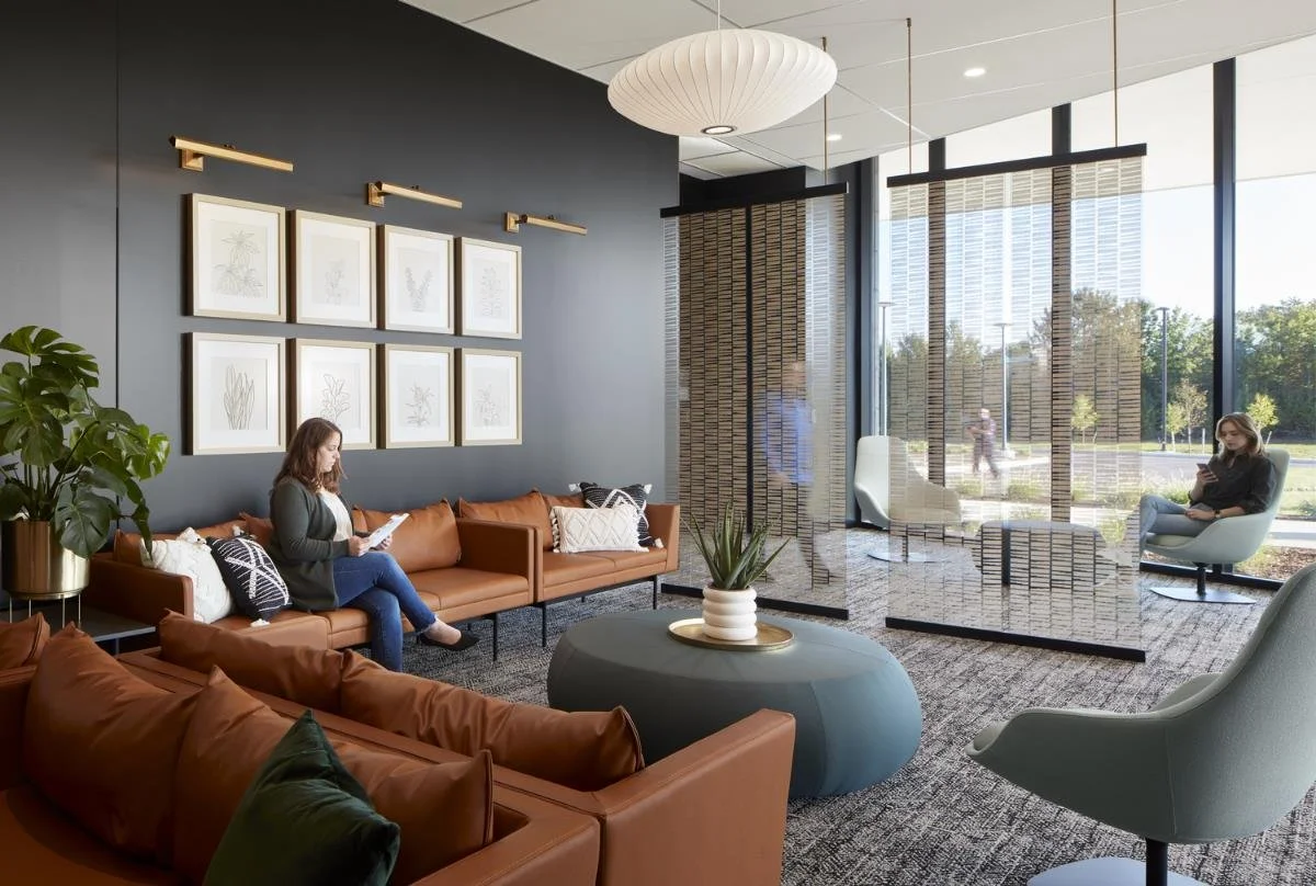 This orthopaedic hospital located in Akron, Ohio had a strong desire to provide their patients and staff with a hospital that did not look or feel like a hospital. Amanda collaborated closely with the owner to transform the interior into a more hospitality-focused experience. She offered comprehensive interior design services, including selecting furniture and artwork. The introduction of distinctive lighting, brass accents, black paint, and luxurious faux leather and velvet upholstery enhanced the ambiance, contributing to the hospital's recognition as a nationally award-winning facility
